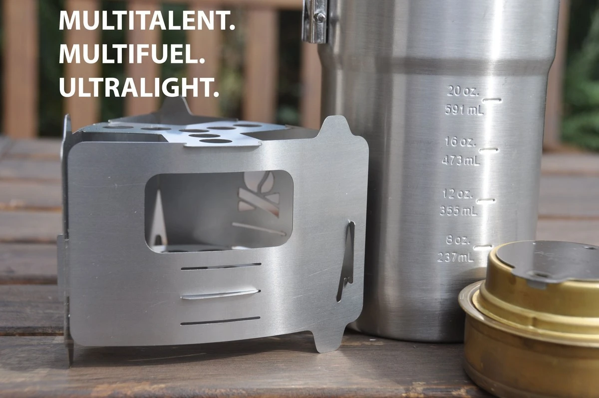 Polyvalent : possibilité de l’utiliser avec de nombreux carburants : bois, alcool solide (tablette Esbit), avec du gel. Sa conception prévoit aussi de pouvoir insérer un brûleur à alcool de type Trangia.