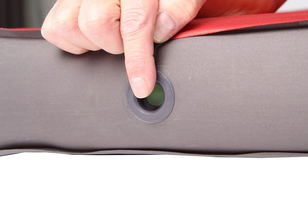 Le MegaMat Duo 10 est muni de soupapes séparées de gonflage et de dégonflage. Elles ne dépassent pas et sont robustes. Une mini-pompe est fournie en supplément.
