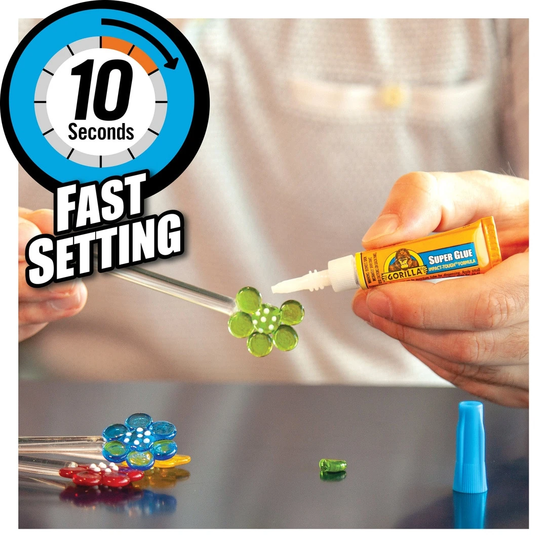 La Gorilla Super Glue est une colle instantanée ultra forte. Elle est conçue pour coller et faire des réparations rapide et permanente. Prise rapide : elle sèche en l’espace de 10 à 45 secondes. Formule épaisse pour un débit fluide contrôlable.