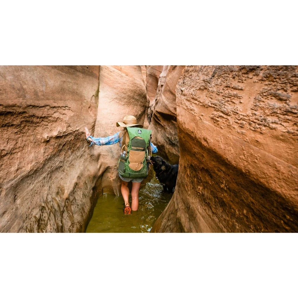 Le rabat supérieur amovible, les poches ceintures et les fermetures à éclair sont traités DWR. Le sac à dos est confectionné avec un tissu Nylon Robic haute ténacité 100D sur les parties peu exposées et 210D sur celles qui peuvent être soumises à l’abrasion.