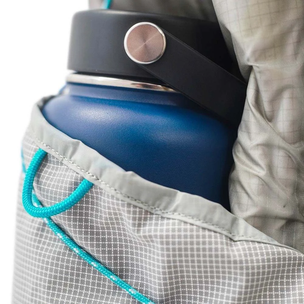Le sac à dos est relativement épuré. En plus de son volume principal, il compte une poche avec fermeture éclair sur le dessus, une poche extensible sur l’arrière et de deux poches sur les côtés avec double accès. Des boucles d’attaches sont également présentes sur l’arrière du sac et un emplacement pour une poche à eau est situé à l’intérieur.