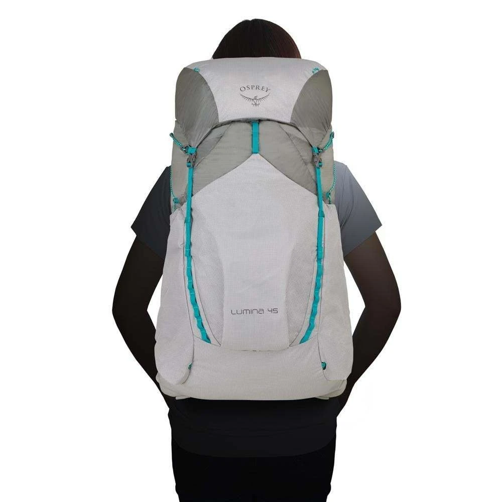 Le Lumina 45 d’Osprey est un sac à dos ultraléger pour femme. Un poids plume qui ne sacrifie pas le confort de portage. Il dispose d’un panneau dorsal suspendu en filet AirSpeed qui offre ventilation, stabilité et confort. Le système est complémenté par les bretelles et la ceinture ExoForm qui garantissent un bon transfert du poids vers les muscles les plus forts.