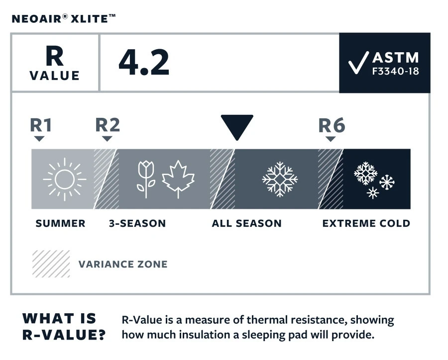 Matelas gonflable Thermarest NeoAir XLite très léger, isolant, confortable. Disponible en plusieurs tailles, avec une épaisseur de 6,4 cm.